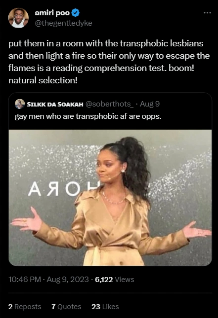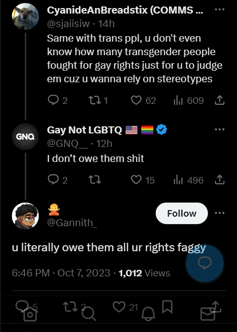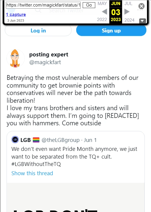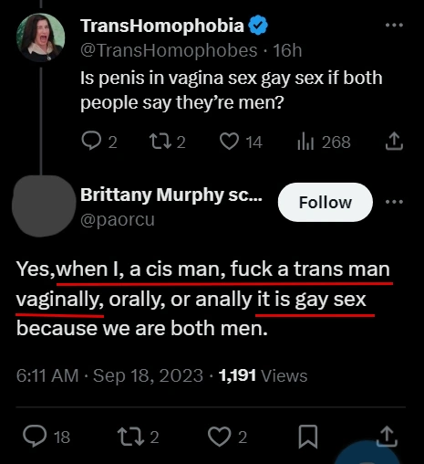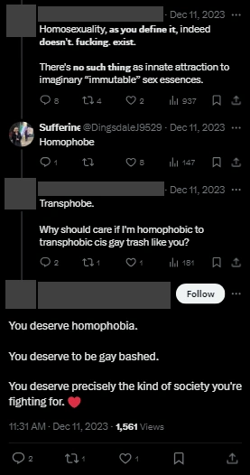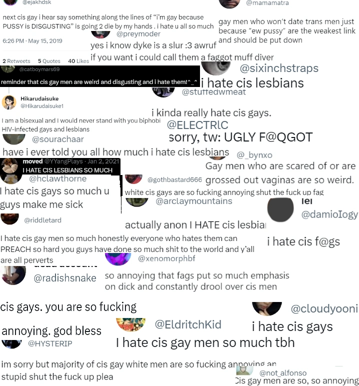 Below is a small sample of particularly bad or obvious homophobic rhetoric collected from trans rights activists and their supporters on Twitter/X. See all