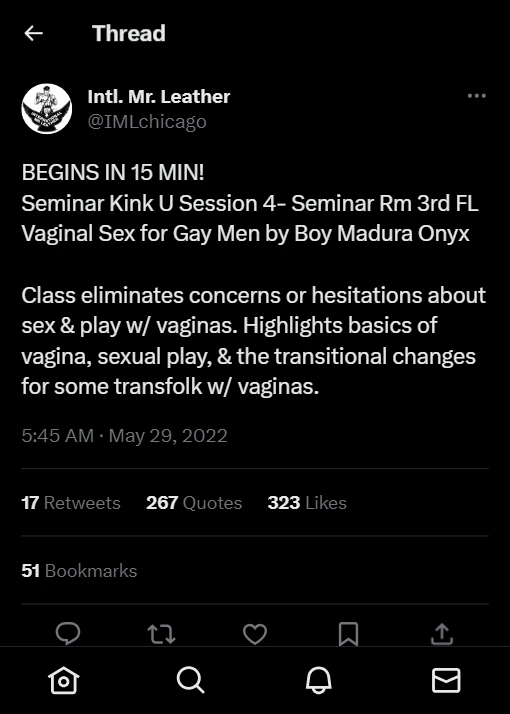If you follow the links, you'll see Hayden has written an entire thread about how horrible gay men who say "vaginas are gross" are. This kind of guilting and emotional manipulation is common in trans rights activist circles.