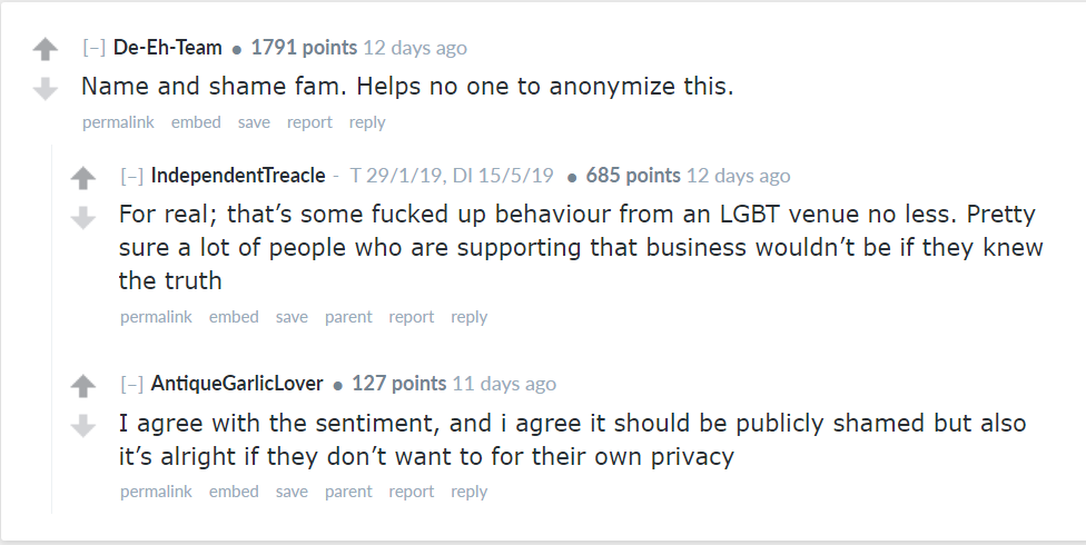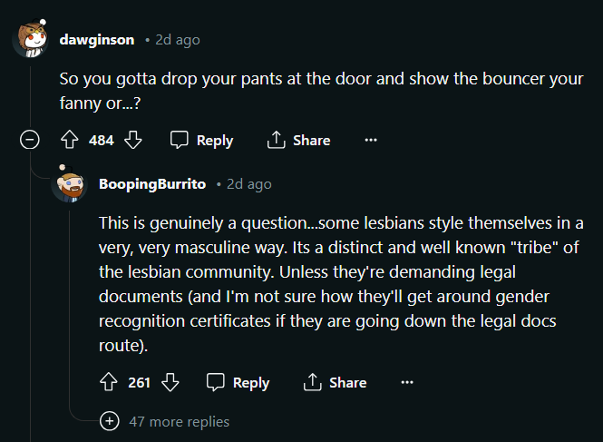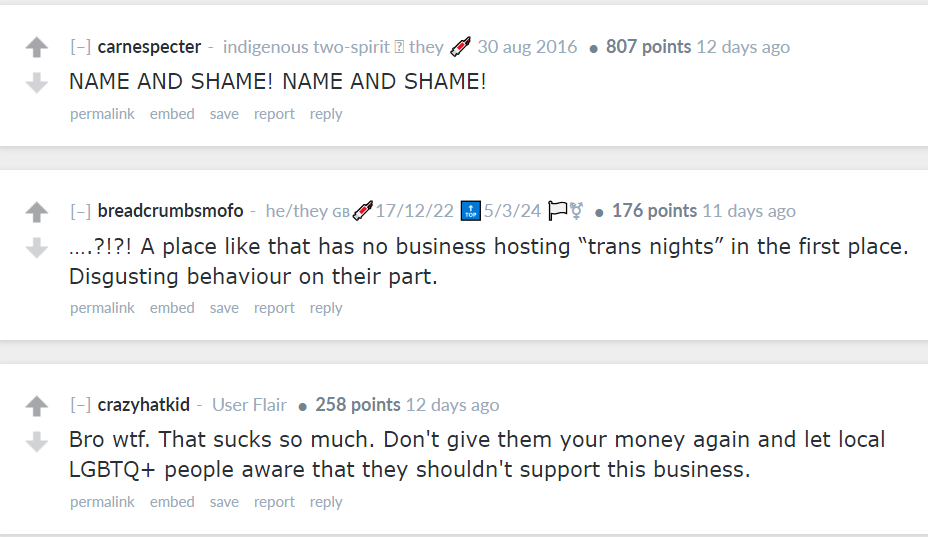 Reddit users show contempt towards a lesbian bar that excludes biological males