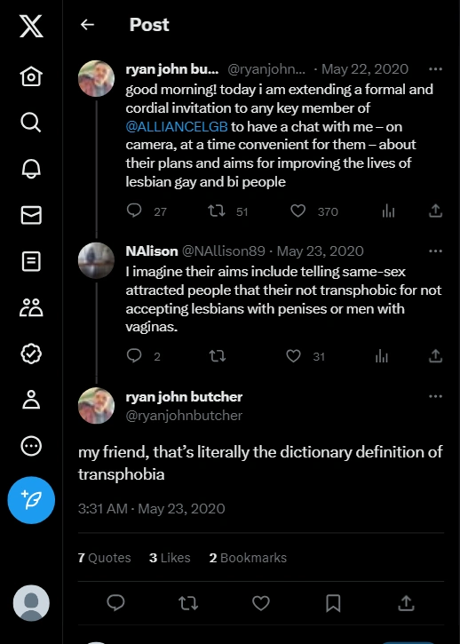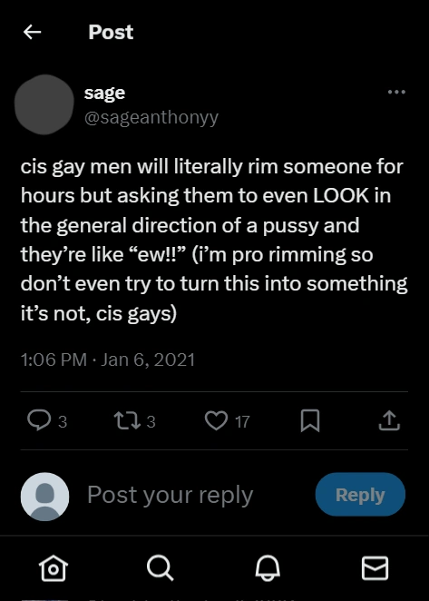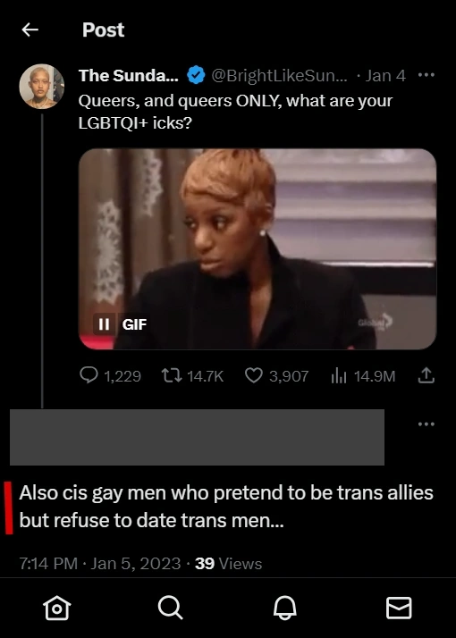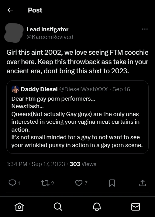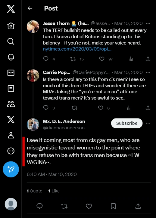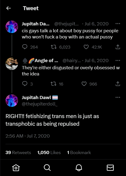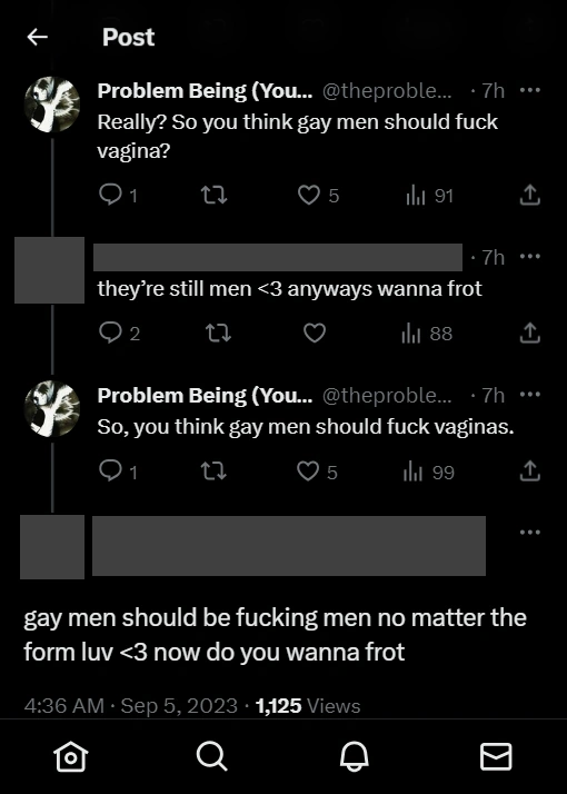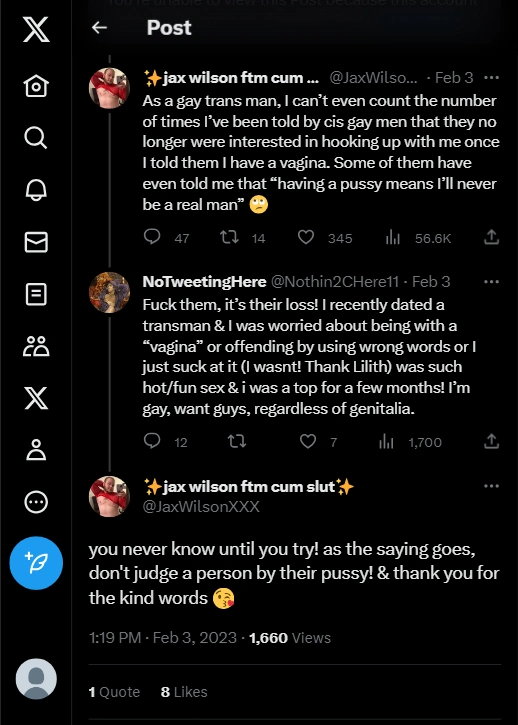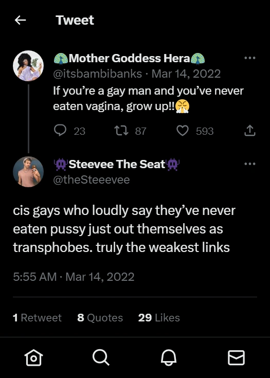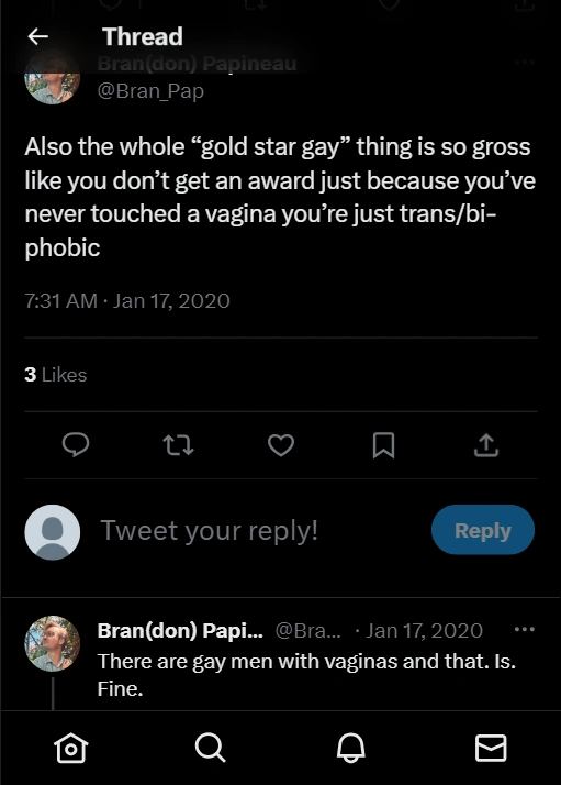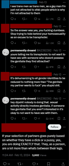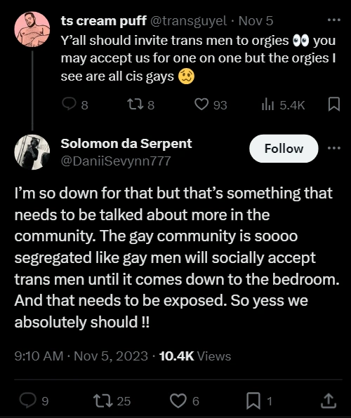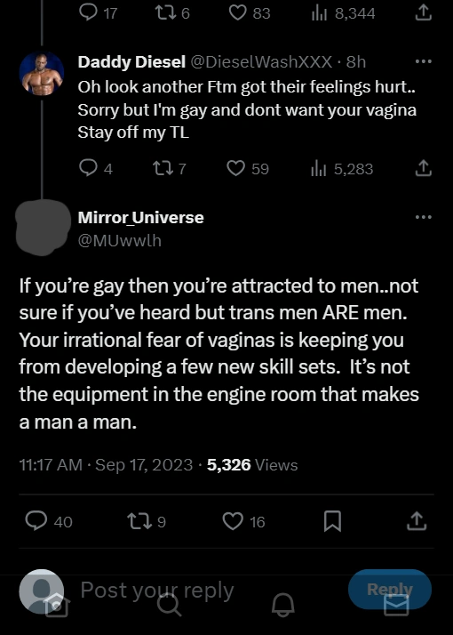 Gay men not dating trans men (people with vaginas) should be "exposed", according to this person.