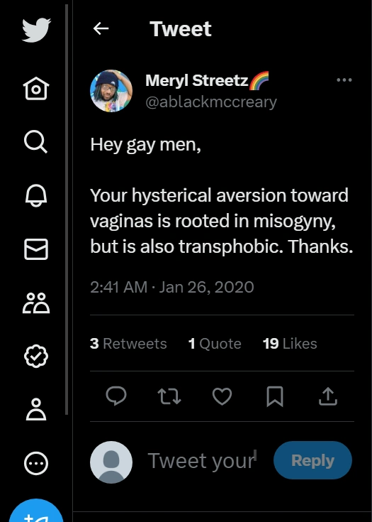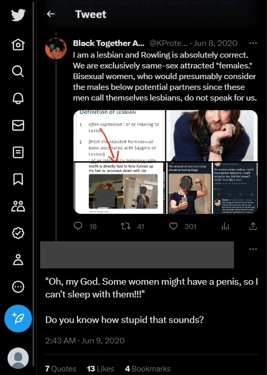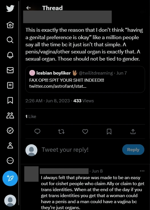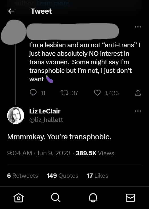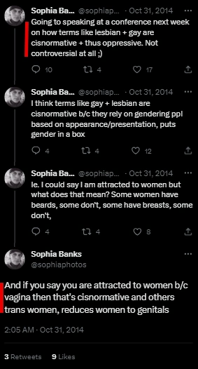 The obfuscation of what biological sex is and means (seen in the last tweet) is a prime example of how trans activists erode peoples' boundaries and definitions.