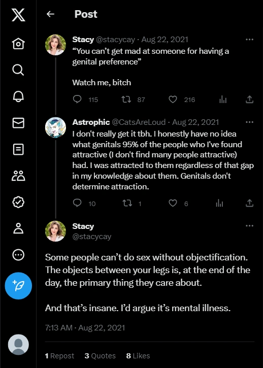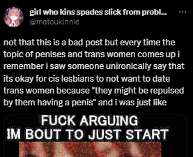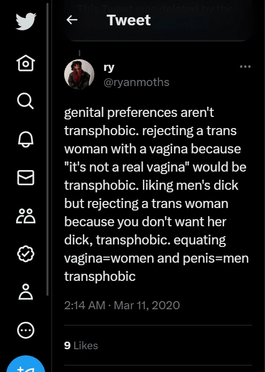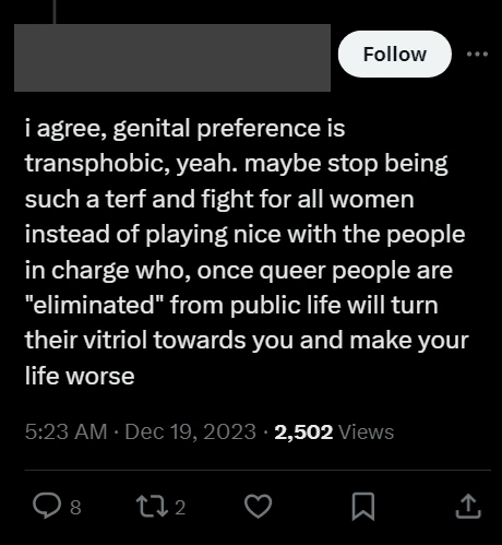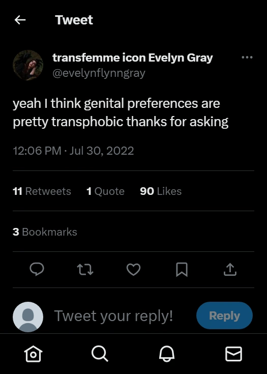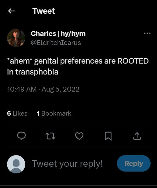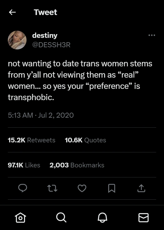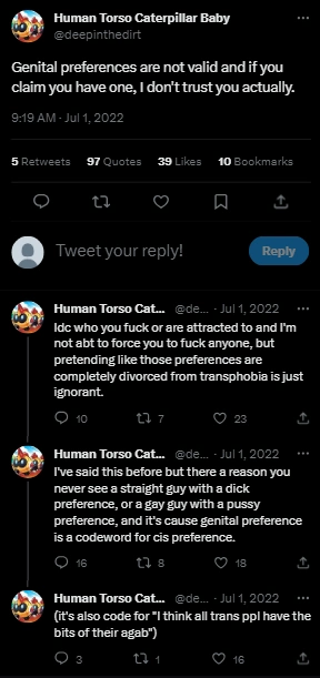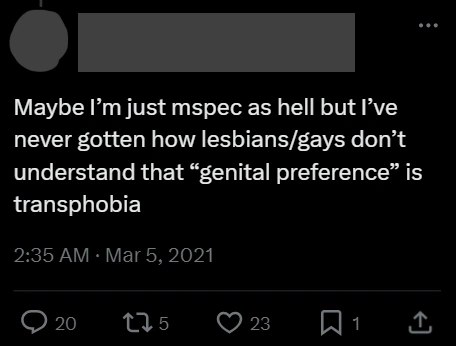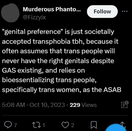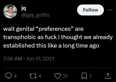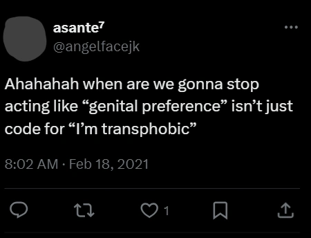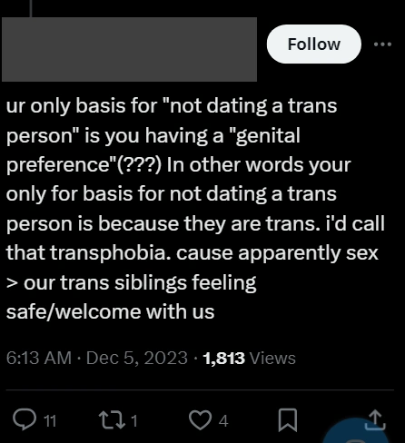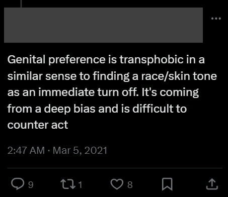 I've seen this argument a few times from hardline "genital preferences are transphobic" people.
