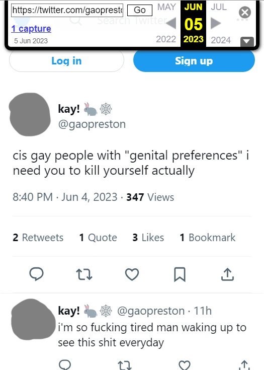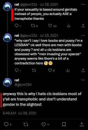 This page contains homophobic tweets from trans rights activists and their allies that have been tagged as "compulsory bisexuality". See all tweets