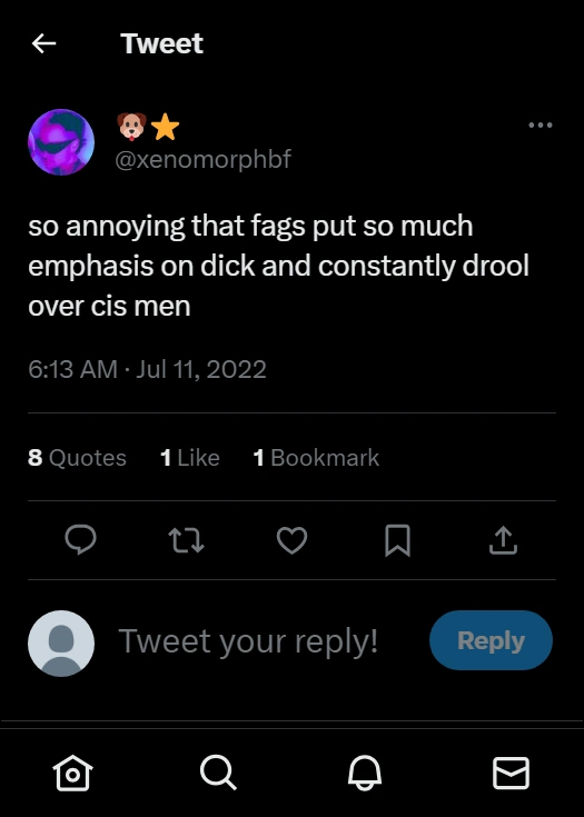 Huh. That's the exact same reason I'm not reporting this tweet for homophobia.