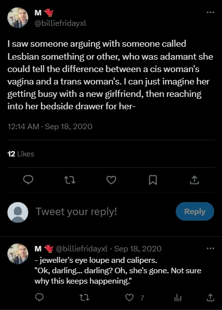 The obfuscation of what biological sex is and means (seen in the last tweet) is a prime example of how trans activists erode peoples' boundaries and definitions.