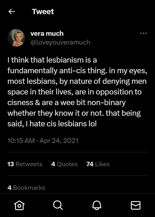This person thinks that not dating men makes a lesbian less of a woman. Yay for progressive values!