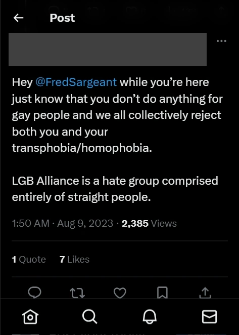 Fred Sargeant is a veteran gay rights activist, and a quick Google search reveals the LGB Alliance is run by LGB people.
