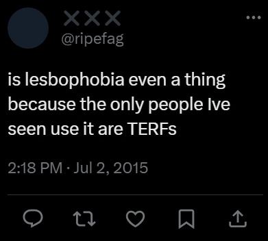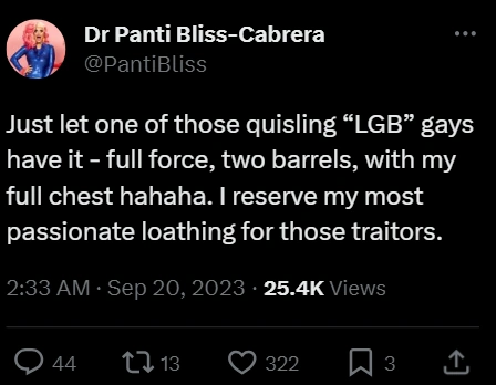 I feel in a way that TRAs are more vicious and hateful than old style homophobes. At least gay bashers never put so much time and effort into composing comments to erase, mock and degrade lesbians & gays, whilst pretending to support them.