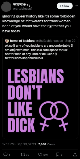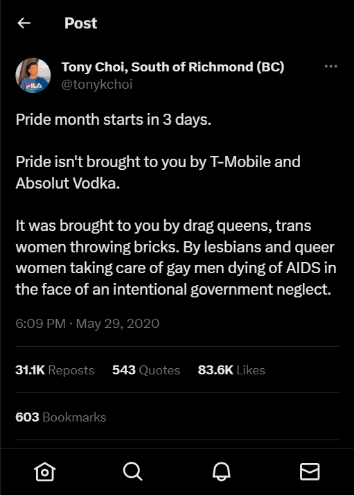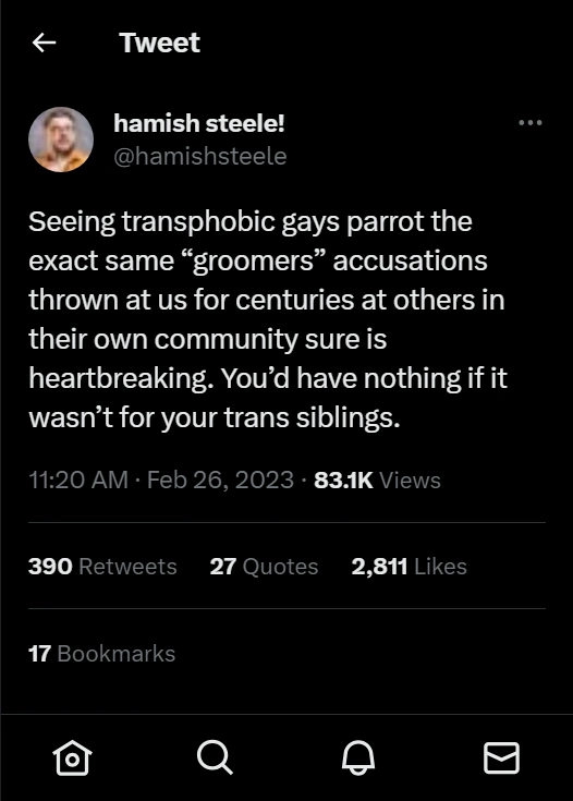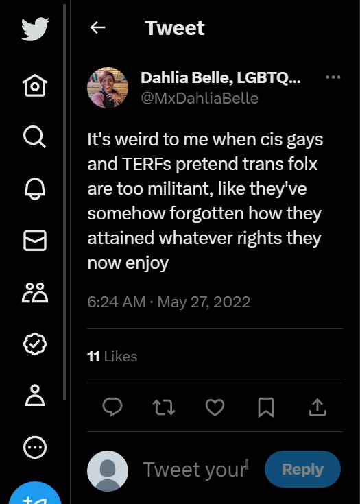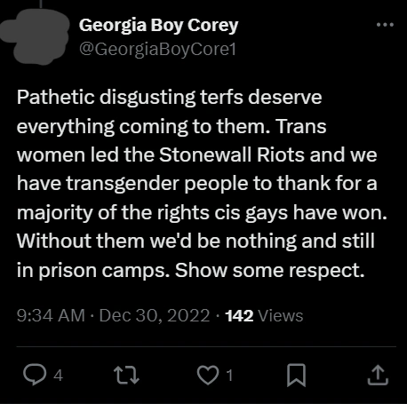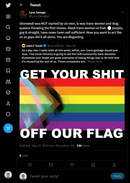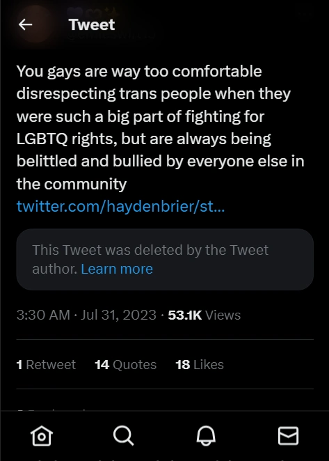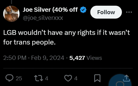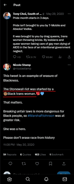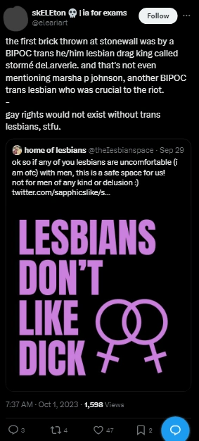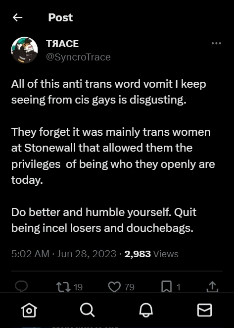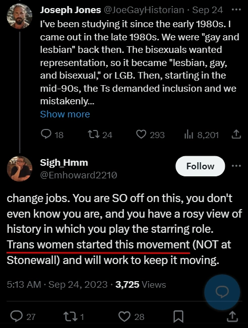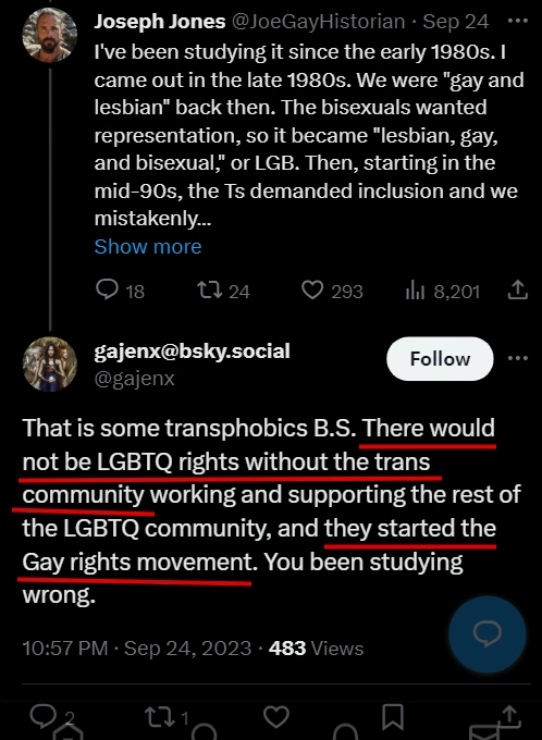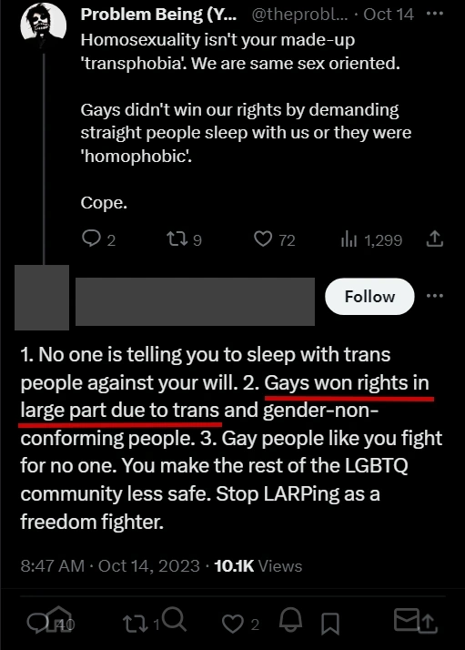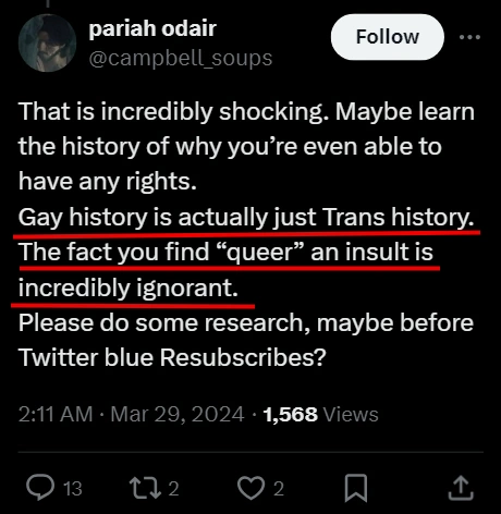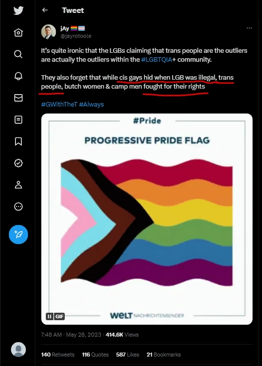 "Gay history is actually just trans history" has to be some of the worst historical erasure of LGB people I've ever seen.