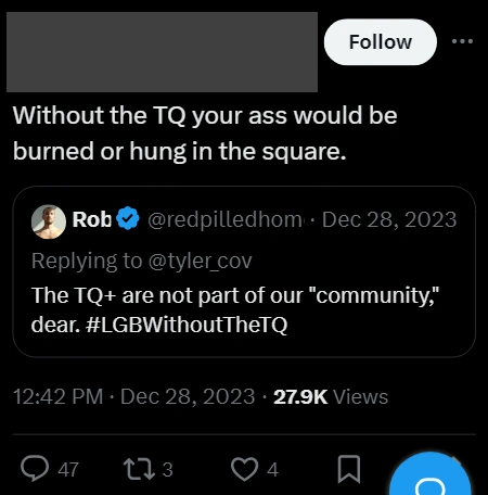 Ignoring the fact gays and lesbians do not owe their rights to trans women, since when did owing someone require you to want sex with them?