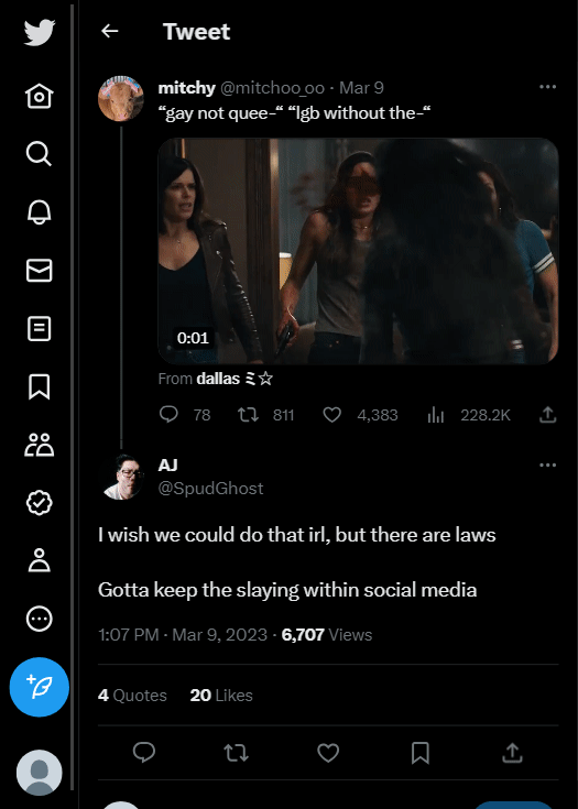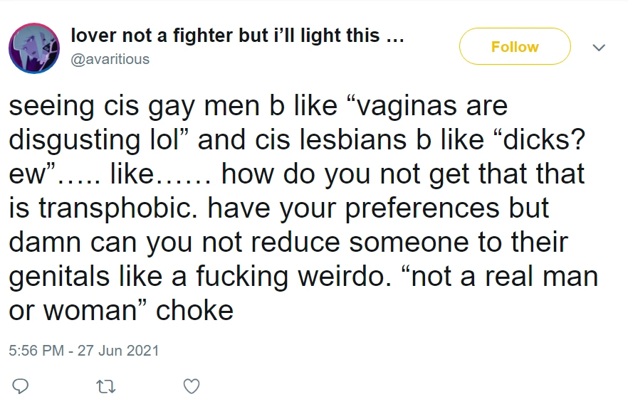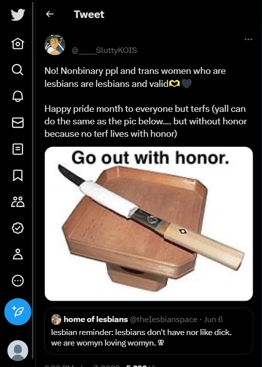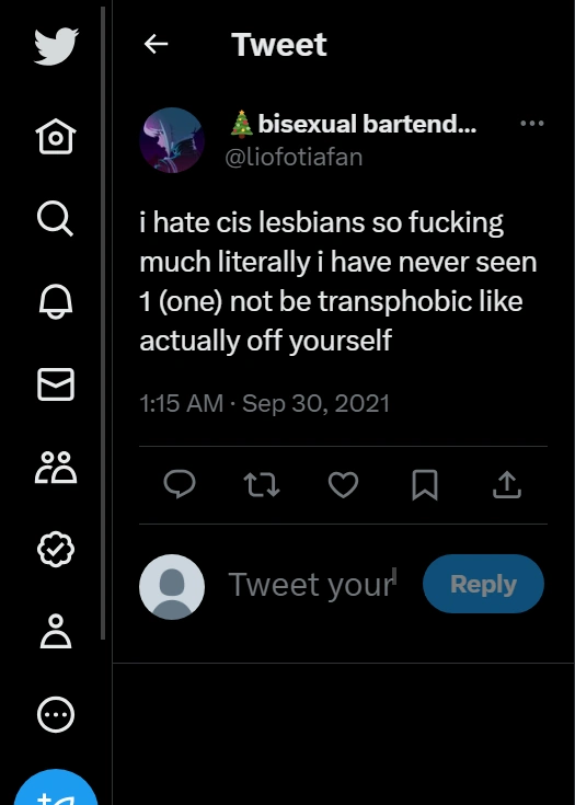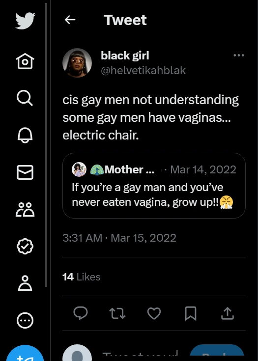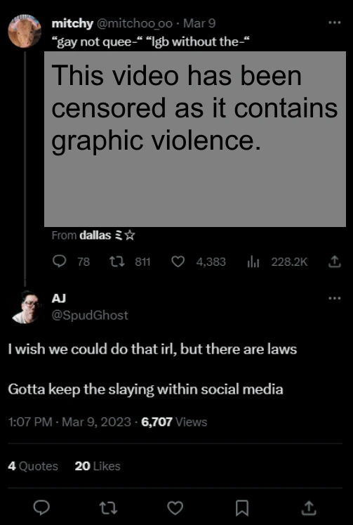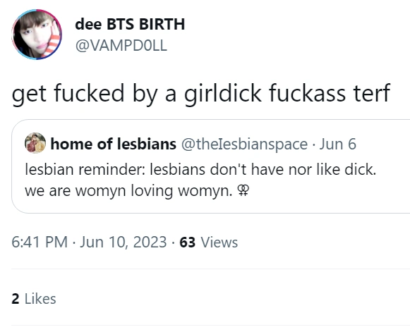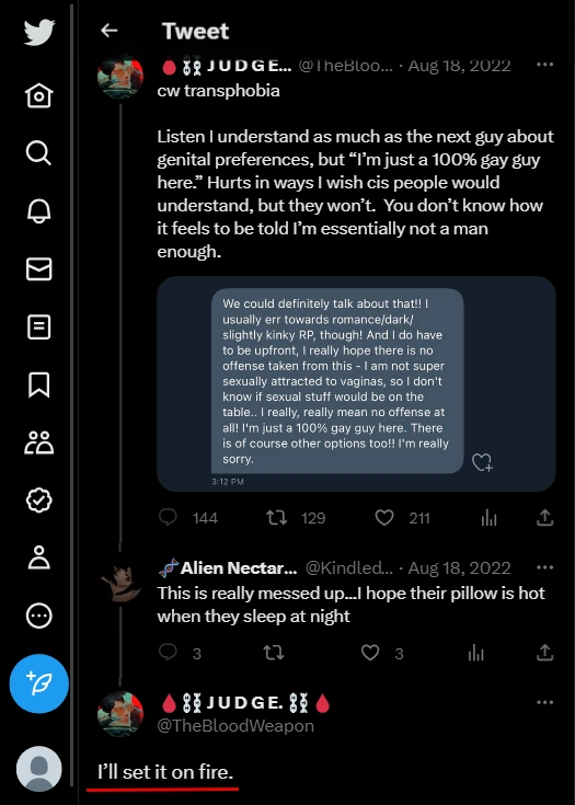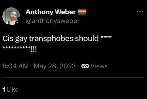 This page contains homophobic tweets from trans rights activists and their allies that have been tagged as "violent rhetoric". See all tweets